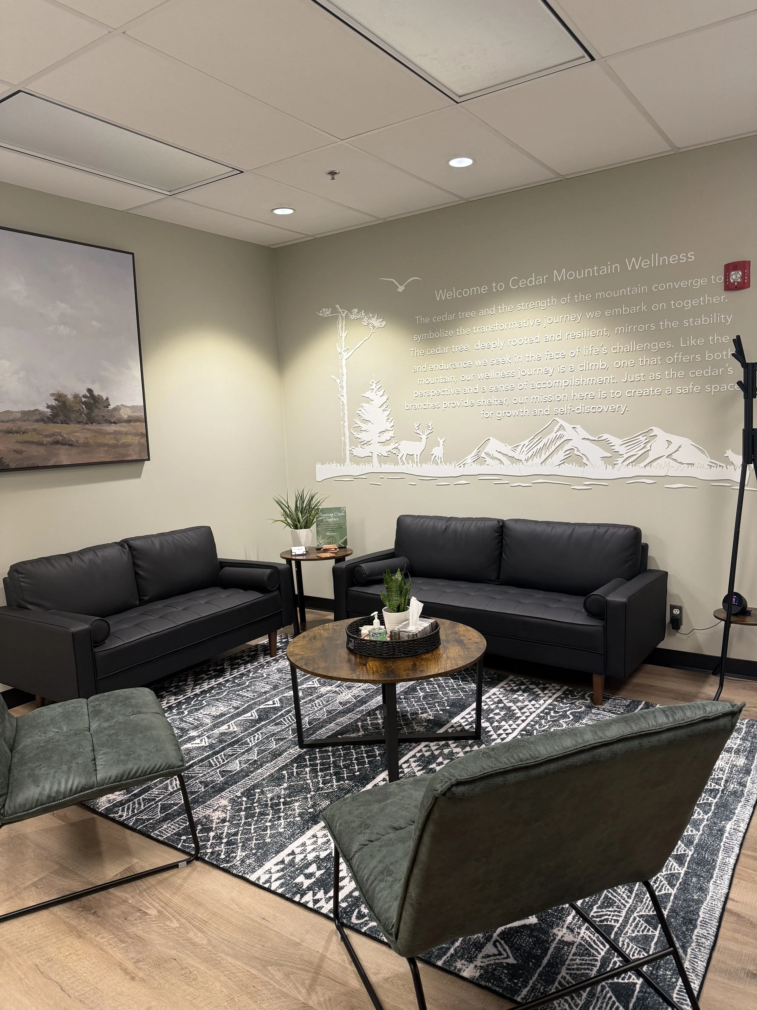 Cedar Mountain Counselling is located inside Cedar Mountain Wellness at 501–1020 Lorimer Blvd, in southwest Winnipeg, Manitoba. We offer a welcoming, quiet, and comfortable space designed to support your mental health journey, whether you're joining us in person or through secure virtual sessions across Manitoba and Canada.